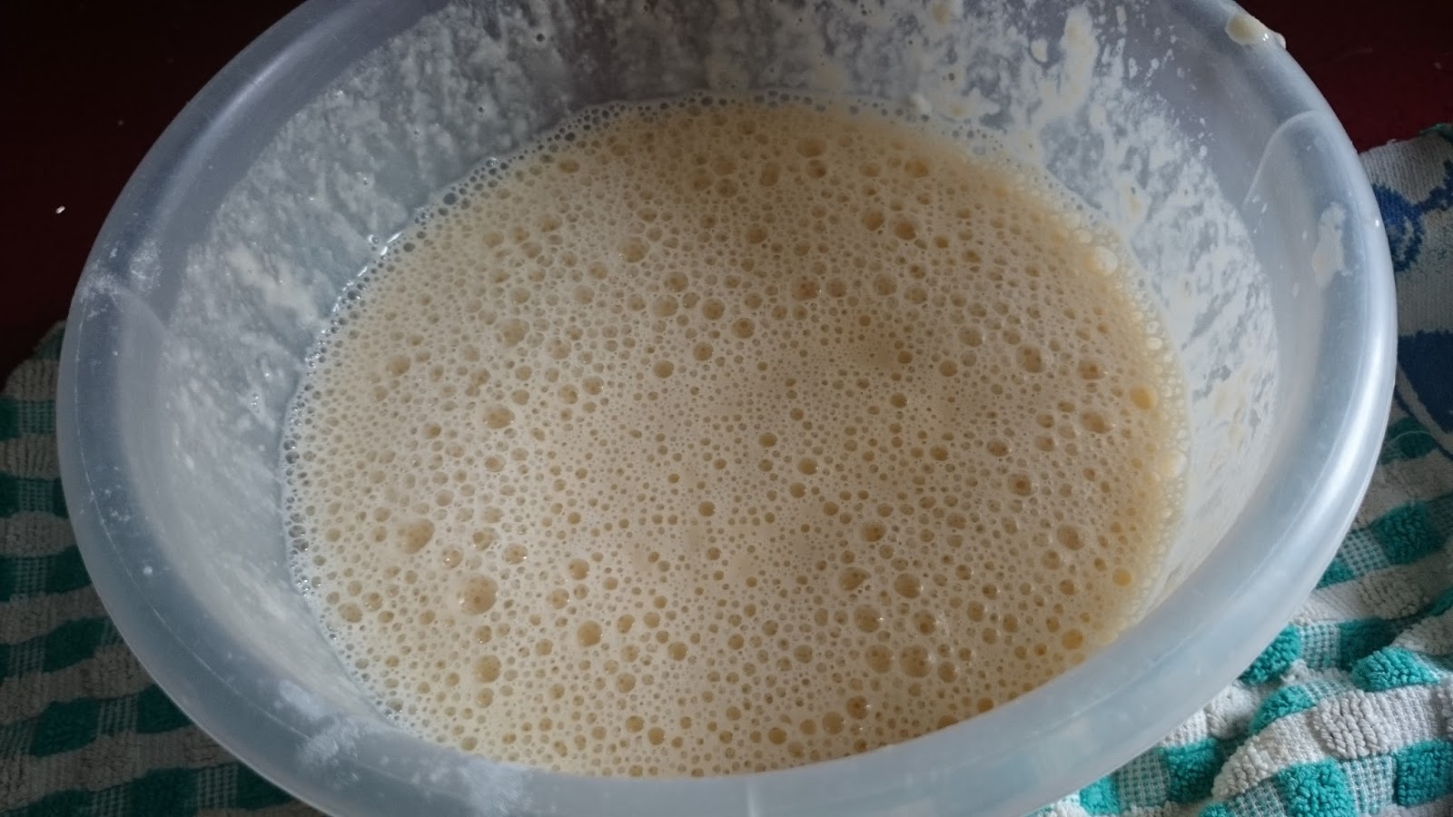 huevos el azúcar la vainilla la leche y tres manzanas, batimos con una batidora